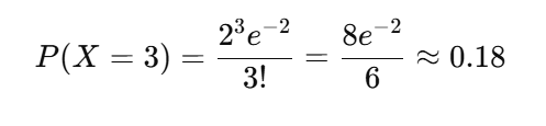 例題:あるバス停に10分間で平均2人が来るとき、10分間でちょうど3人来る確率は?
