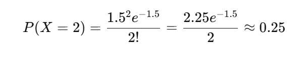 演習①:1日に平均1.5回の地震が起こる地域で、ある日にちょうど2回の地震が発生する確率は?