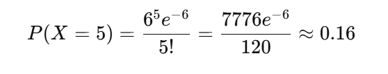 求めたいのは、2時間でちょうど5人来る確率 → k = 5