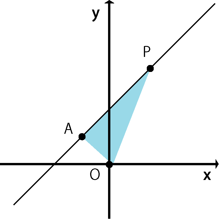 グラフ上の△AOPの面積が10のとき、点P の座標を求めなさい