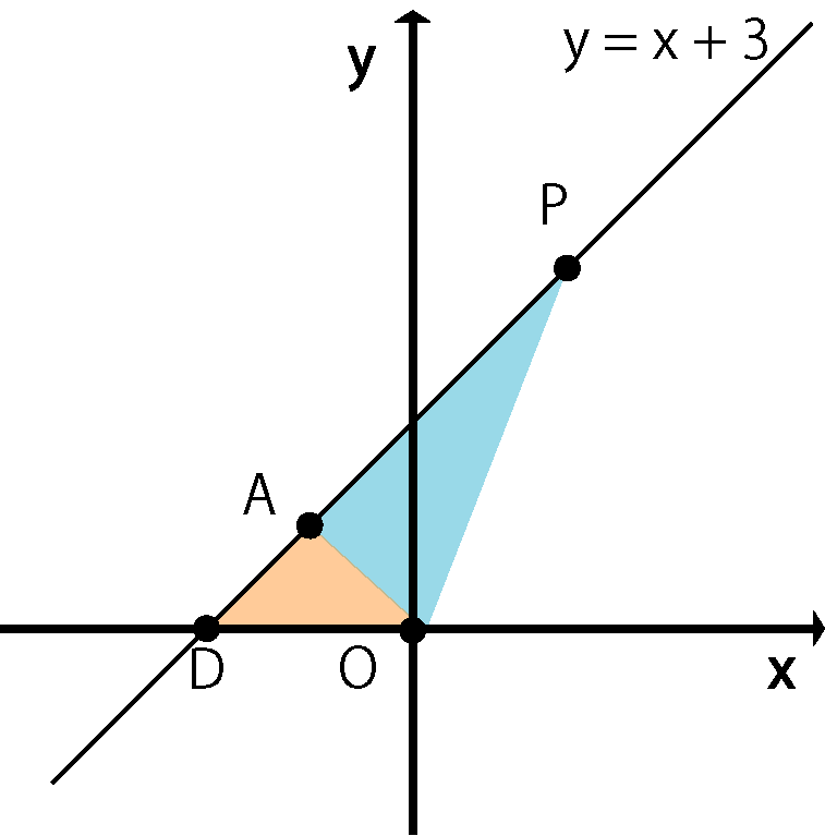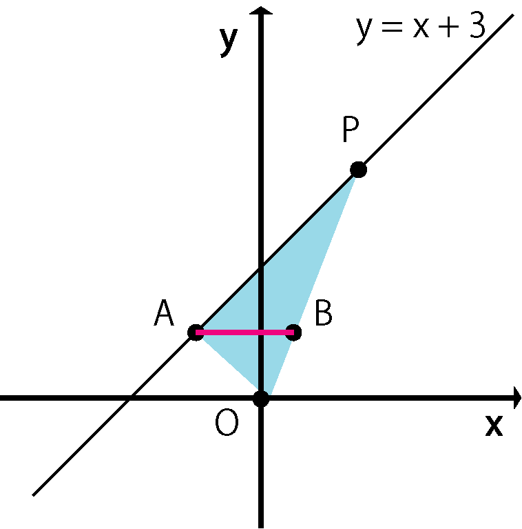 △AOB と△PAB に切り分けてそれぞれの面積を求めます。