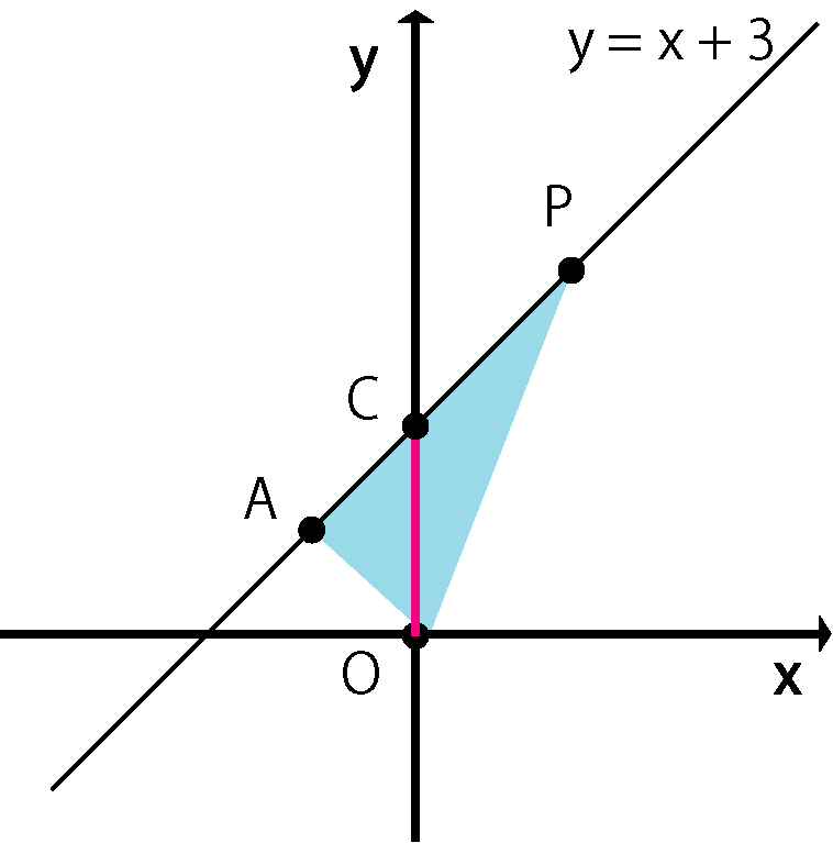 △AOC と△COP に切り分けてそれぞれの面積を求めます。