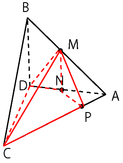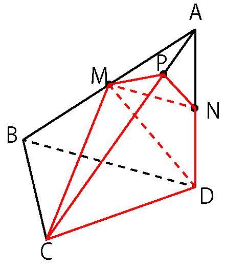 今回は、元の立体A-BCDと体積を求めたい立体M-CDNPの体積比で解きます。